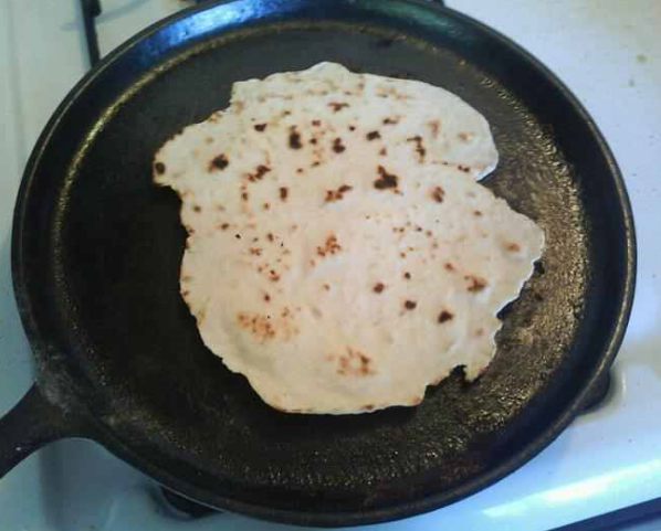 To assemble. I took a freshly cooked toritlla and spread some tartar sauce on it.. then put 3 pieces of fish down the center, topped it with some cole slaw, then some of the creamy baja sauce, and topped with the regular baja sauce.